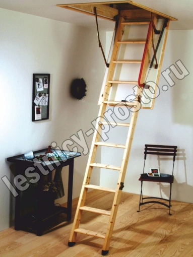 HOBBY 26 - трехсекционная утепленная лестница из скандинавской медленнорастущей ели, отличающейся повышенной прочностью.
