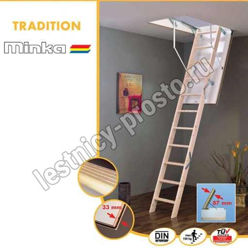Чердачная складная лестница MINKA TRADITION 70×130 см, h-280 см