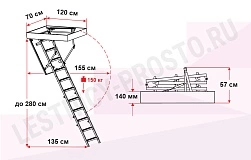 Чердачная лестница с люком OMAN STALLUX 70х120 см, h-280 см
