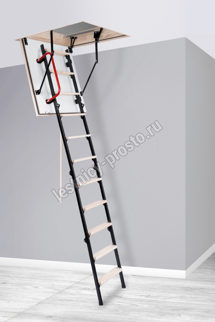 Благодаря своим небольшим размерам лестница идеально подходит для установки в узких и маленьких коридорах. Лестница имеет не скользящие накладки на ножки, которые идеально прилегают к полу, предотвращают появление царапин на поверхности пола и придают лестнице эстетичный вид после ее резки (подгонки по высоте). Для повышения безопасности и удобства использования лестница оснащена устойчивым и прочным поручнем.