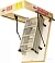 Складная 4-х секционная чердачная лестница. Рабочая поверхность полностью выполнена из алюминия. Термоизоляционная крышка типа "сэндвич" имеет усиленную теплозащиту, облицована с двух сторон ДВП белого цвета. По контуру короба имеется уплотнитель; Все металлические элементы лестницы покрыты порошковой краской.