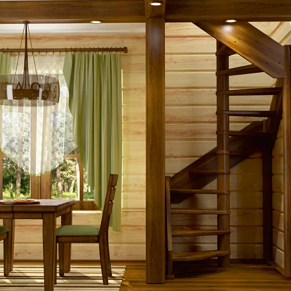 Лестница выполнена из древесины хвойных пород 8 % влажности.
