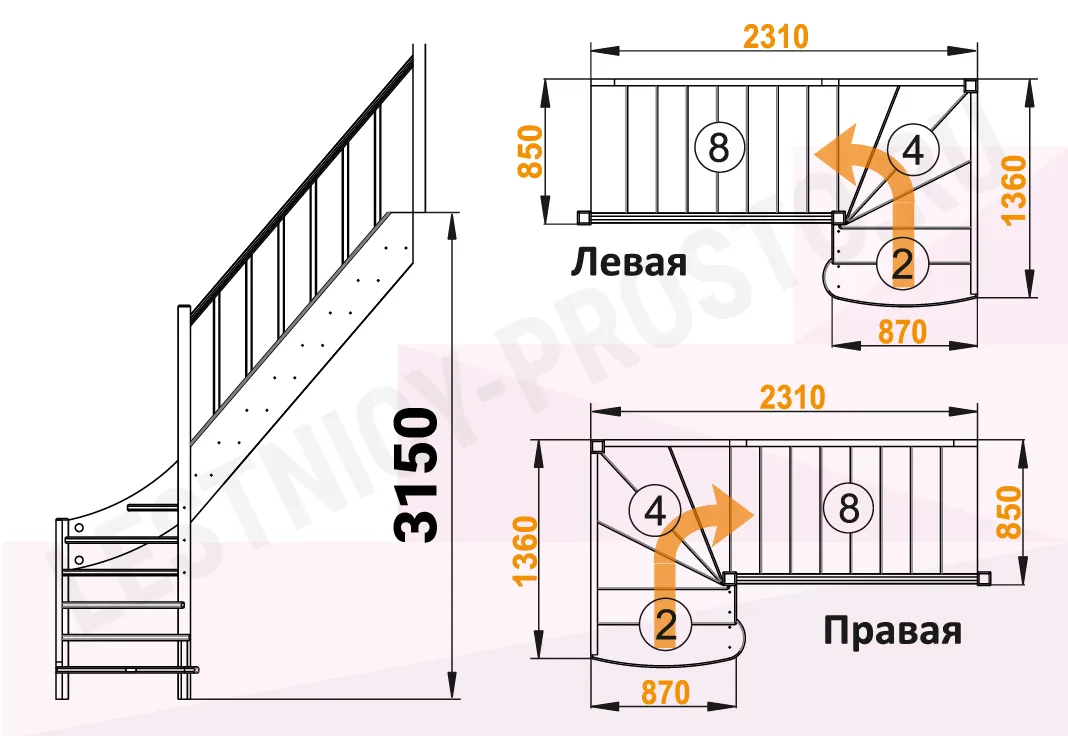 | Лестница из сосны ЛС-07М/2 с подступёнками под покраску |