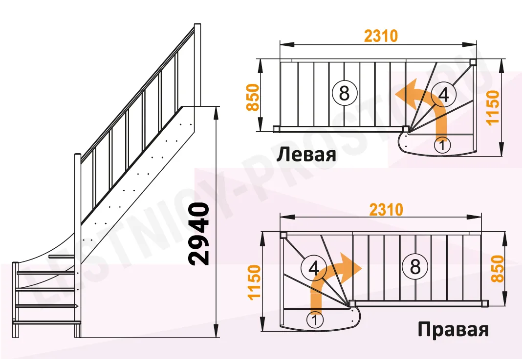 | Лестница из сосны ЛС-07М/4 под покраску |