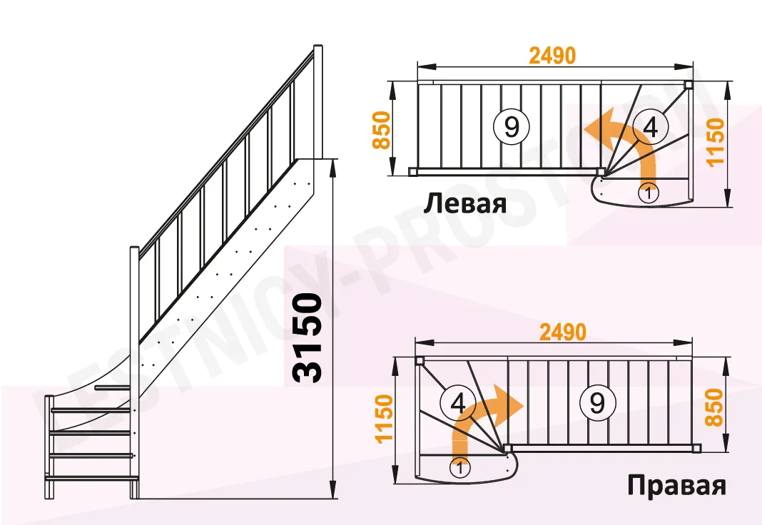 Высота лестницы 3150