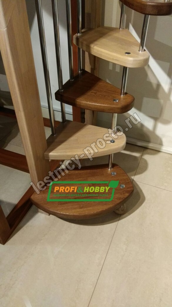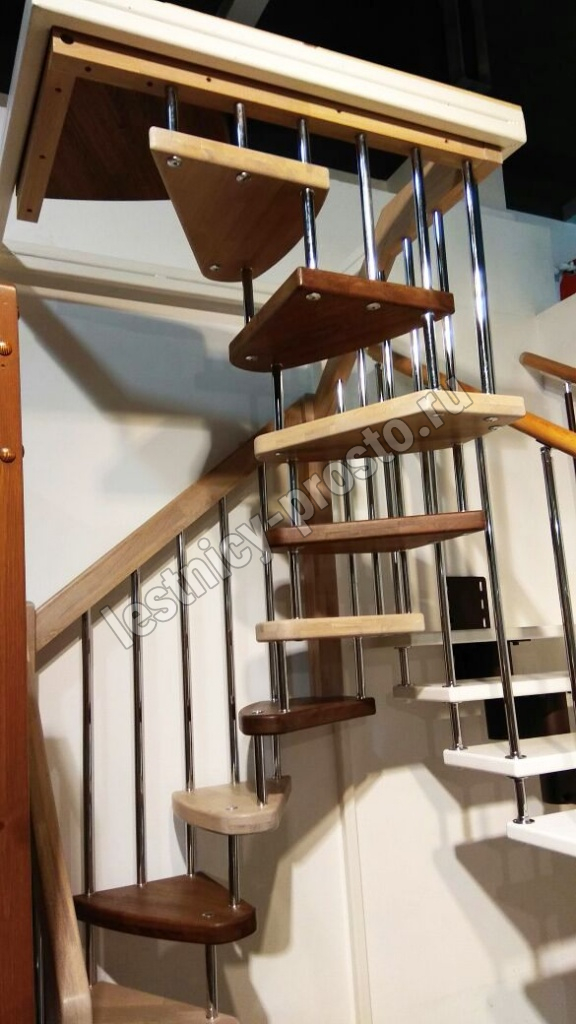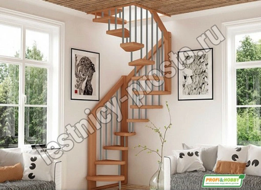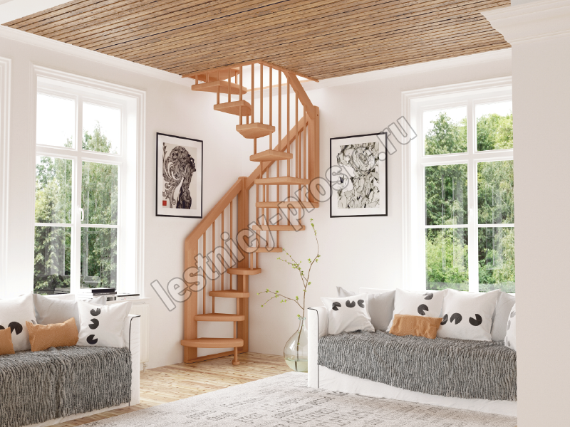 Стильная сверхмалогабаритная лесенка выручит в таких помещениях, где установка других лестниц проблематична из-за нехватки пространства. Базовый комплект включает в себя деревянные элементы лестницы и ограждения без какого-либо покрытия.