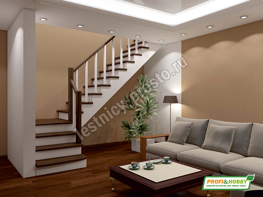 Базовый комплект включает в себя деревянные элементы лестницы и ограждения без какого-либо покрытия. Вы можете заказать у нас покраску лестницы в цвета, отвечающие особенностям вашего помещения.