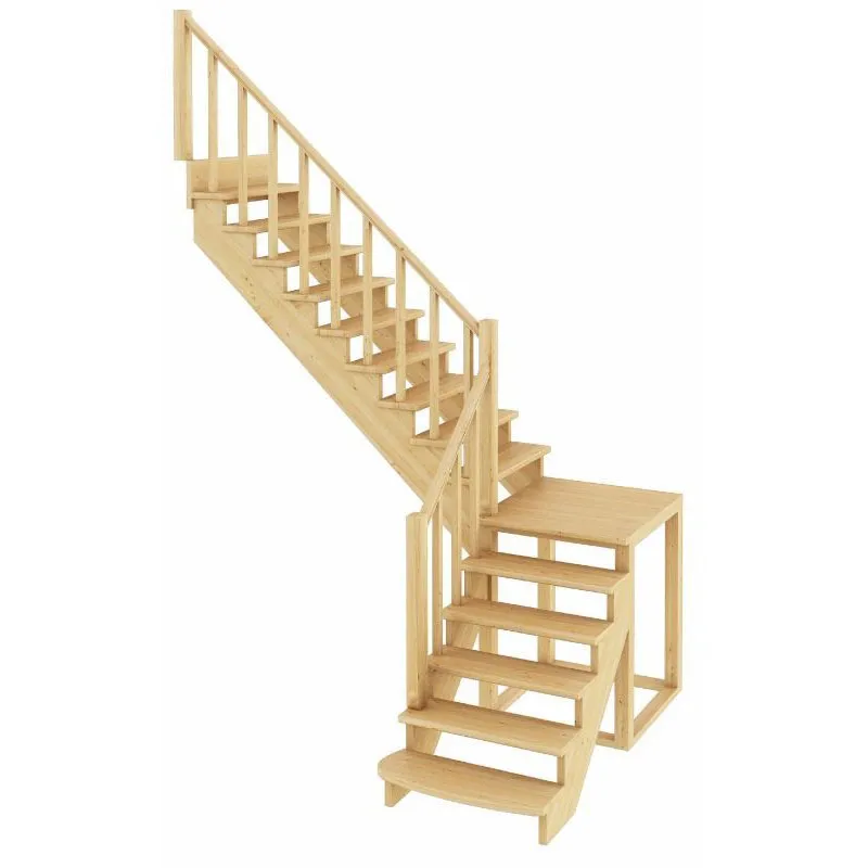 Ступени и поручень лестницы изготовлены из дуба, остальные элементы из сосны.