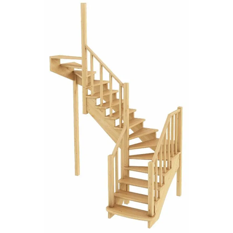 Ступени и поручень лестницы выполнены из дуба, остальные элементы из сосны.