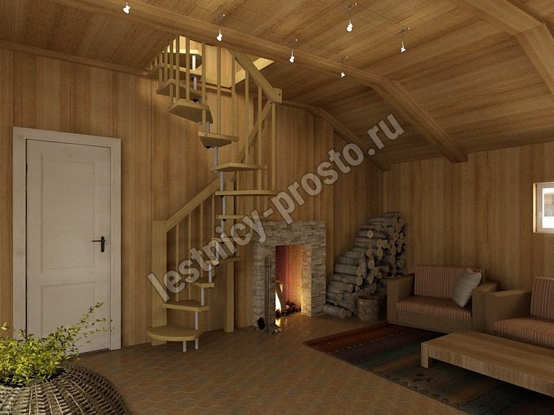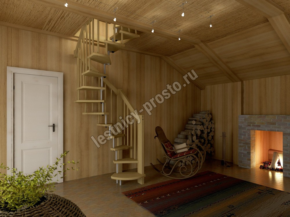 Уютная и благородная, благодаря ступеням из бука и аккуратному буковому поручню.
