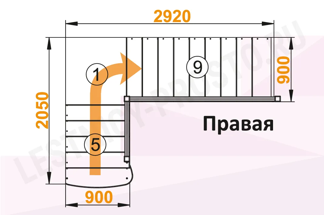 Ширина марша 900 мм
