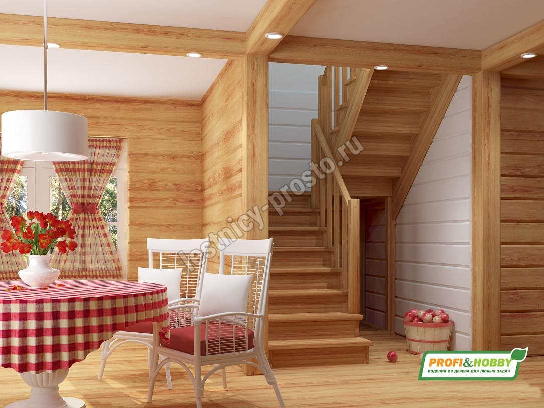 Лестница из сосны К-004М/4 с подступёнками