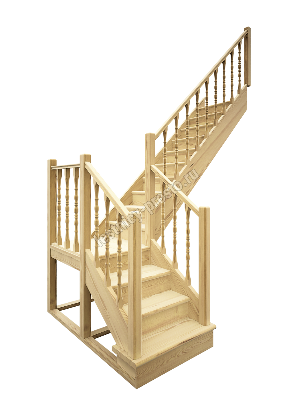 Лестница поставляется в разобранном виде, упакованной в два ящика. Базовый комплект включает в себя деревянные элементы лестницы, подступенки и ограждения без какого-либо покрытия.
