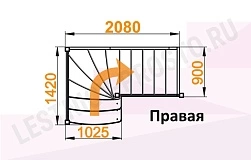 Схема лестницы ЛС-09М/2 с поворотом направо