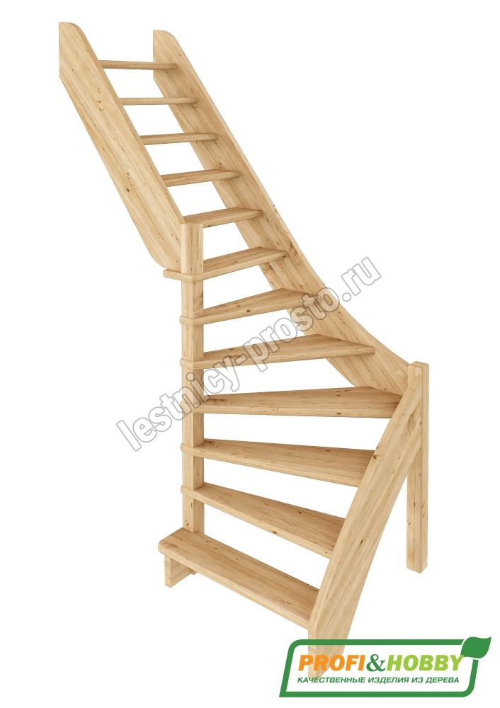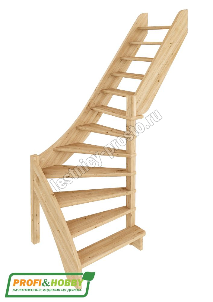 Базовый комплект включает в себя деревянные элементы лестницы без какого-либо покрытия.