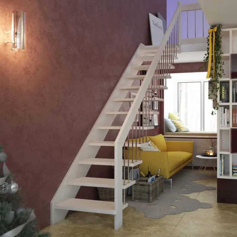 Базовый комплект включает в себя деревянные элементы лестницы и ограждения без какого-либо покрытия.