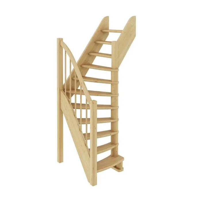 Ступени и поручень лестницы изготовлены из ясень, остальные элементы из сосны.