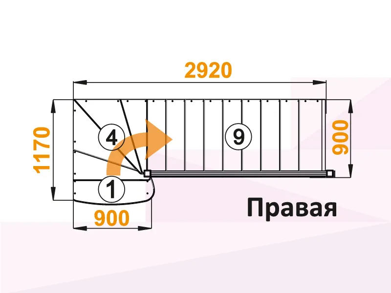 Лестница К-001М/7 с поворотом направо