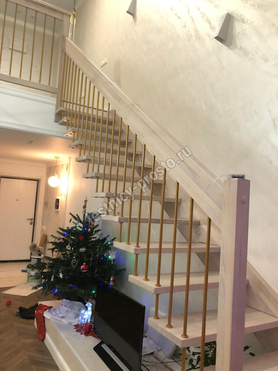 Надёжная современная лестница выполнена по немецкой технологии. Стоимость указана для лестницы с ограждением (с одной стороны); Поставляется в разобранном виде, в комплекте необходимый крепёж; Лестницу можно собрать самостоятельно; Так же, вы можете заказать услугу монтажа нашими специалистами; 4 вида породы дерева для изготовления лестницы: сосна, бук, ясень, дуб; возможна комбинированная лестница: из сосны (ступени бук, ясень, дуб); Деревянные элементы без какого-либо покрытия, отшлифованы, готовы к покраске. За дополнительную плату, вы можете изменить любые параметры, а именно: увеличить глубину ступени; увеличить ширину марша до 900 мм. и выше; заказать подступенки к лестнице; заказать отделку перекрытия (между 1-м и 2-м этажами); изготовить дополнительный промежуточный марш; заказать ограждение 2-го этажа; покраска в любой цвет или несколько цветов или покрытие защитными средствами; дополнение балясины из нержавеющей стали деревянными элементами; покраска балясин из нержавеющей стали порошковой краской в цвет RAL.