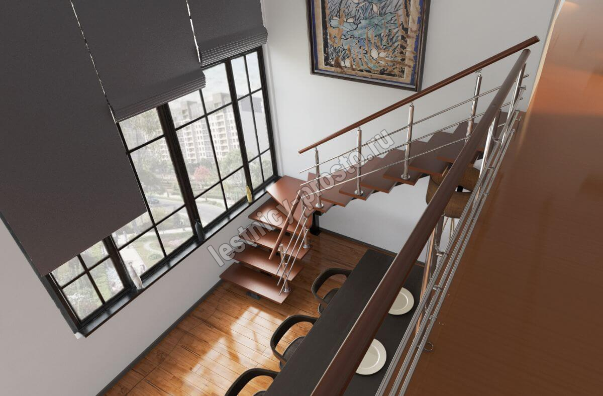 Комплект ограждений для Г-образной лестницы PROSTO MONO из 14 ступеней.