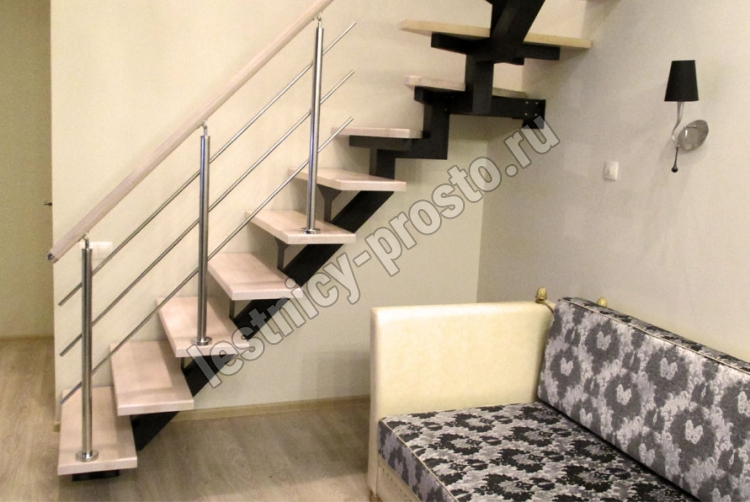 Комплект ограждений для П-образной лестницы PROSTO MONO из 8 ступеней.