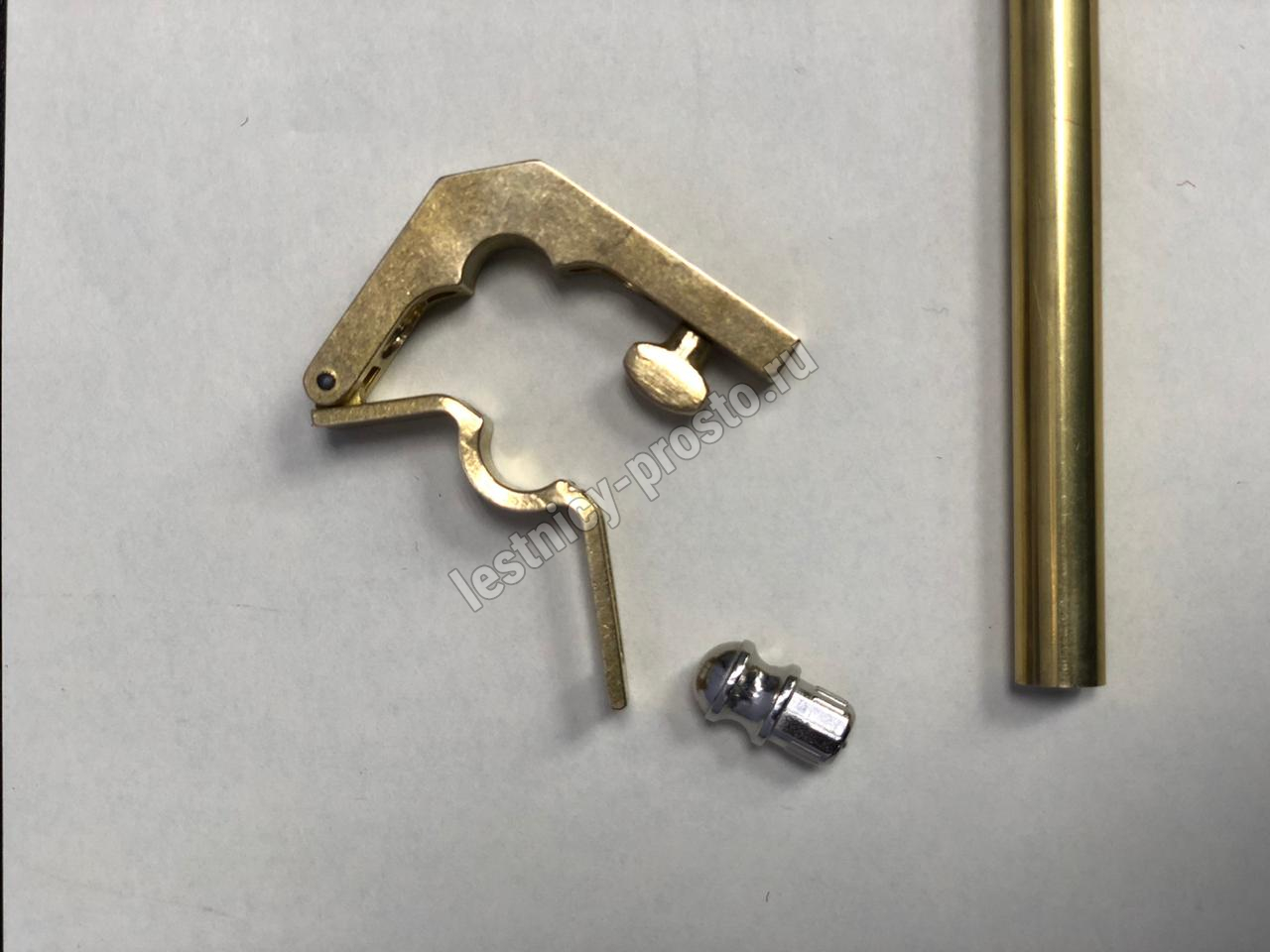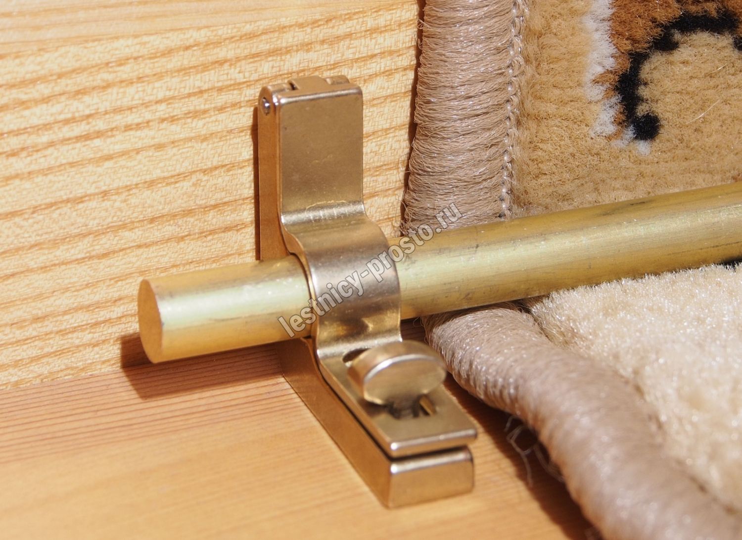 Ковродержатель комплектуется двумя держателями из латуни цвета золото, а также цельным прутком из латуни длиной от 131 до 170 см. Конструкция является сборно-разборной не требующей демонтажа креплений, что делает ее долговечной и очень удобной для чистки ковров и ковровых покрытий.