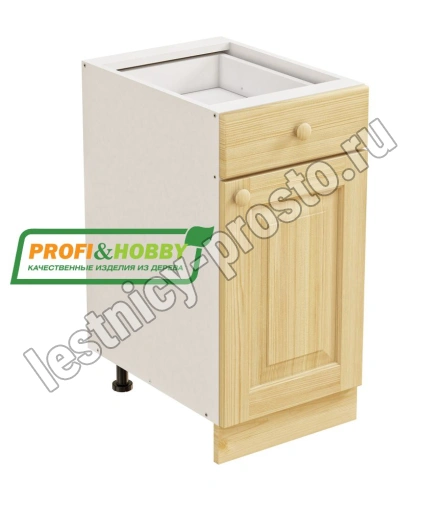 Тумба 1 дверь 1 ящик 400х530х720 + фасад сосна бесцветный акриловый лак