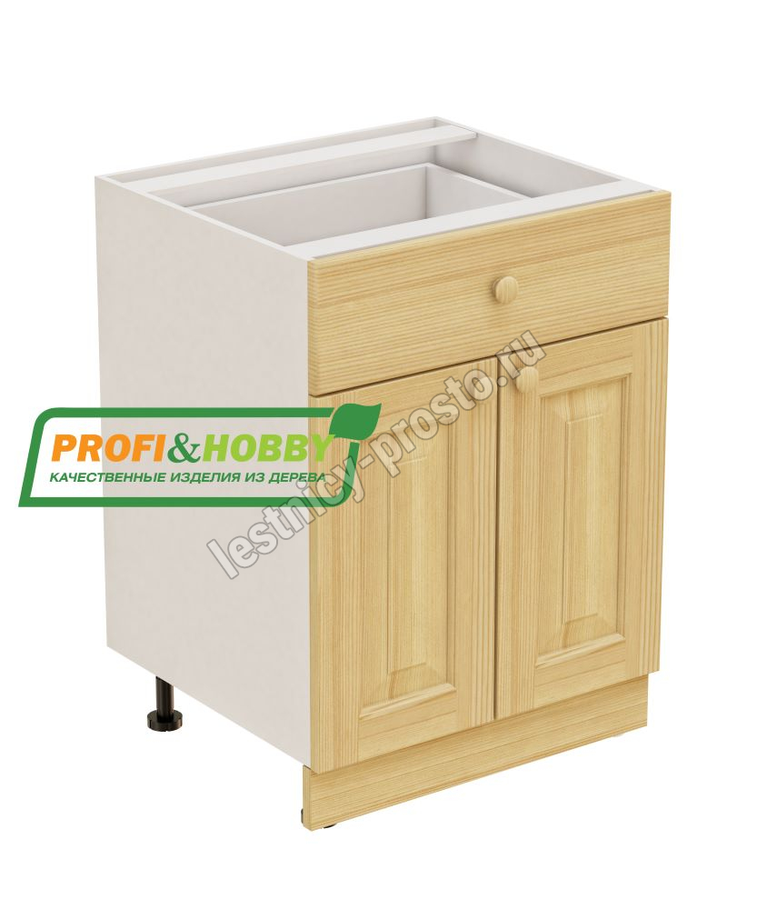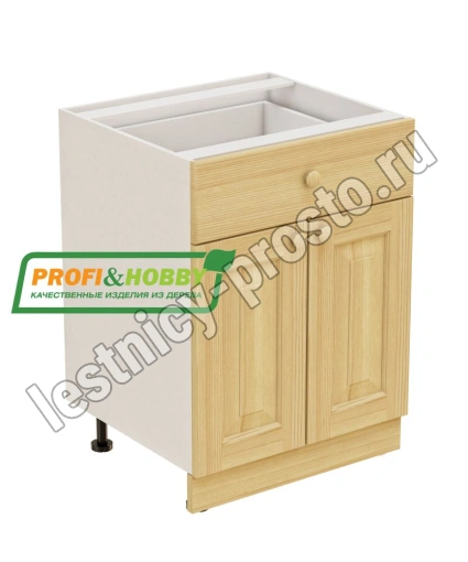 Тумба 2 двери 1 ящик 600х530х720 + фасад сосна бесцветный акриловый лак