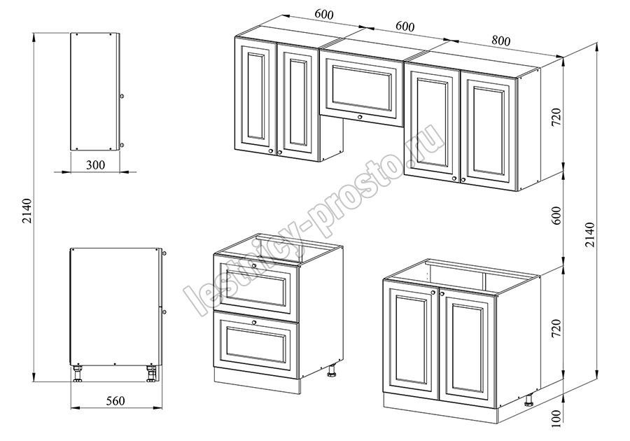 Небольшой кухонный гарнитур из 100% массива сосны шириной всего 2 и высотой 2,14 метра (верхние шкафы 72 см). Один из самых распространенных проектов кухни, который подойдёт для небольшой квартиры, загородного дома, гостиницы или хостела. Цвет на выбор - более 20 вариантов (при заказе кухни в нашем интернет магазине просьба указывать название цвета в комментариях).