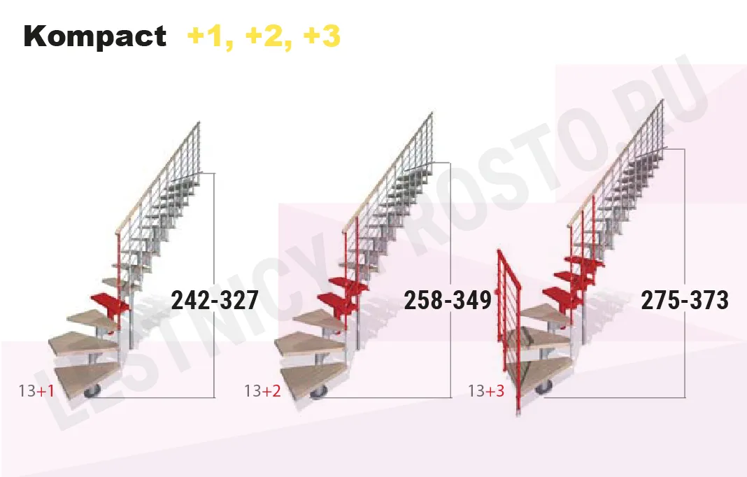 Красивая комфортная лестница с уникальной модульной конструкцией, которая позволяет собрать большое число модификаций, подходящих под ваш проём и другие условия помещения. Возможные варианты сборки лестницы смотрите в блоке "чертежи и схемы". При монтаже модульной лестницы KOMPACT, вы можете варьировать высоту шага и проступь, получив точную необходимую высоту и габариты. Лестница KOMPACT возможна в двух вариантах: с шириной марша 740 мм и 890 мм. Ступени выполнены из массива бука и покрыты качественным износостойким лаком. Базовая комплектация позволяет получить лестницу под высоты этажа в диапазоне 2250 - 3030 мм, кроме того, установив дополнительный комплект увеличения высоты, можно поднять высоту лестницы до 3730 мм. Каркас и стойки ограждения выполнены из пластифицированного металла.