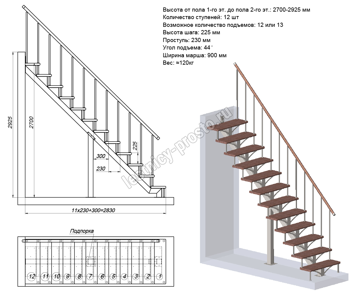 - таким образом вы получаете возможность увеличить общую высоту подъёма лестницы до необходимой.