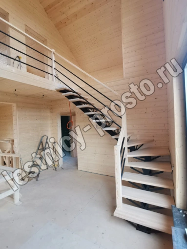 Лестница PROSTO MONO STEP TRINITY г-образная забежная, ступени бук, с ограждением