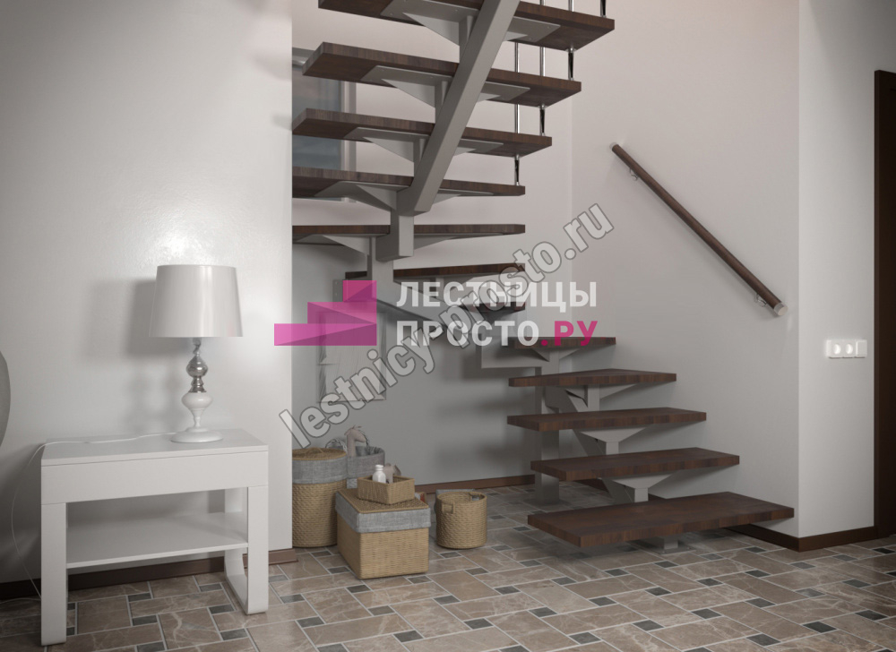 Конструкция представляет собой стальной монокосоур, на который крепятся ступени из выбранной породы дерева.