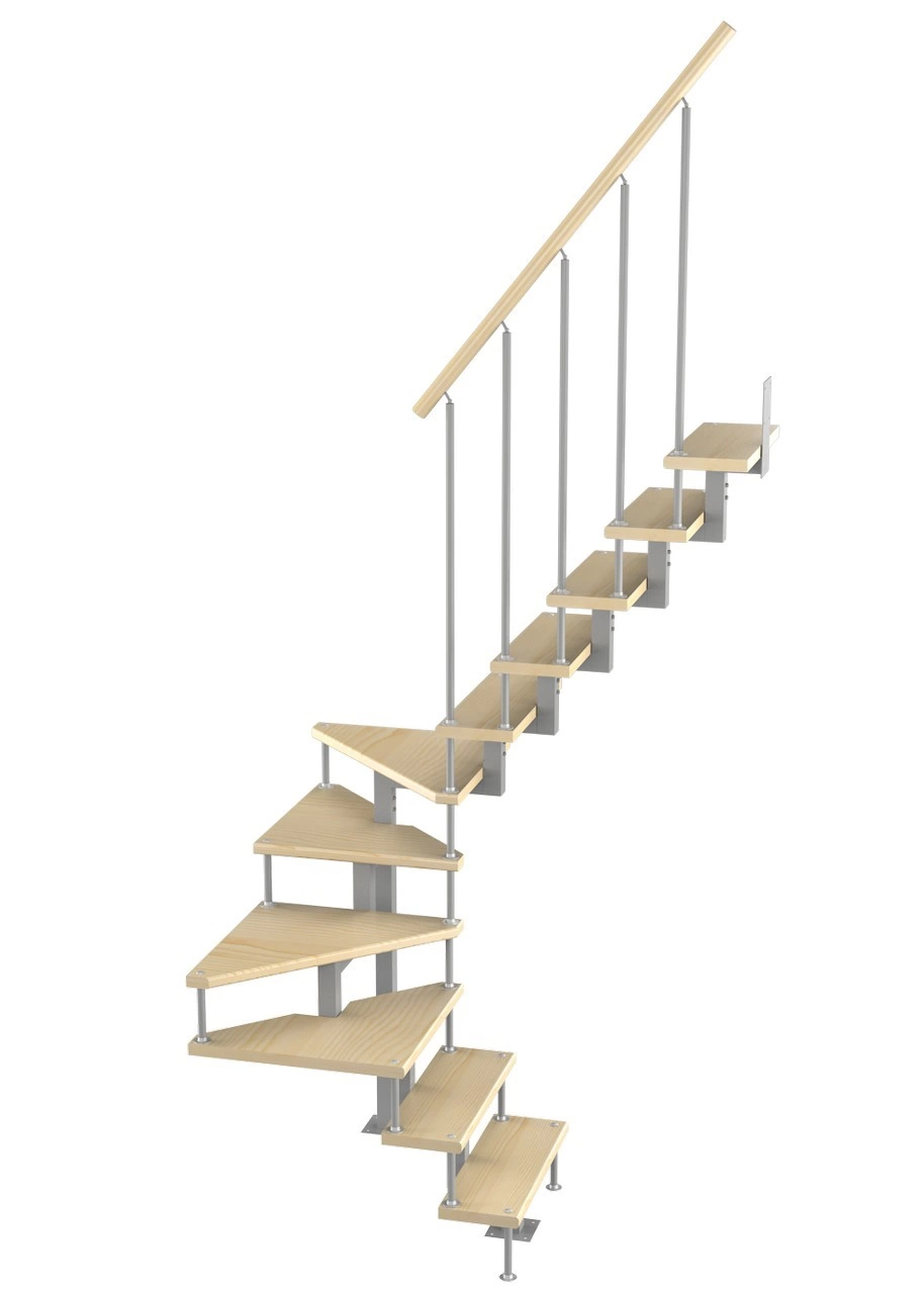 Поворот реализован посредством поворотных ступеней, высота поворота определяется параметрами вашего помещения и размерами проёма.