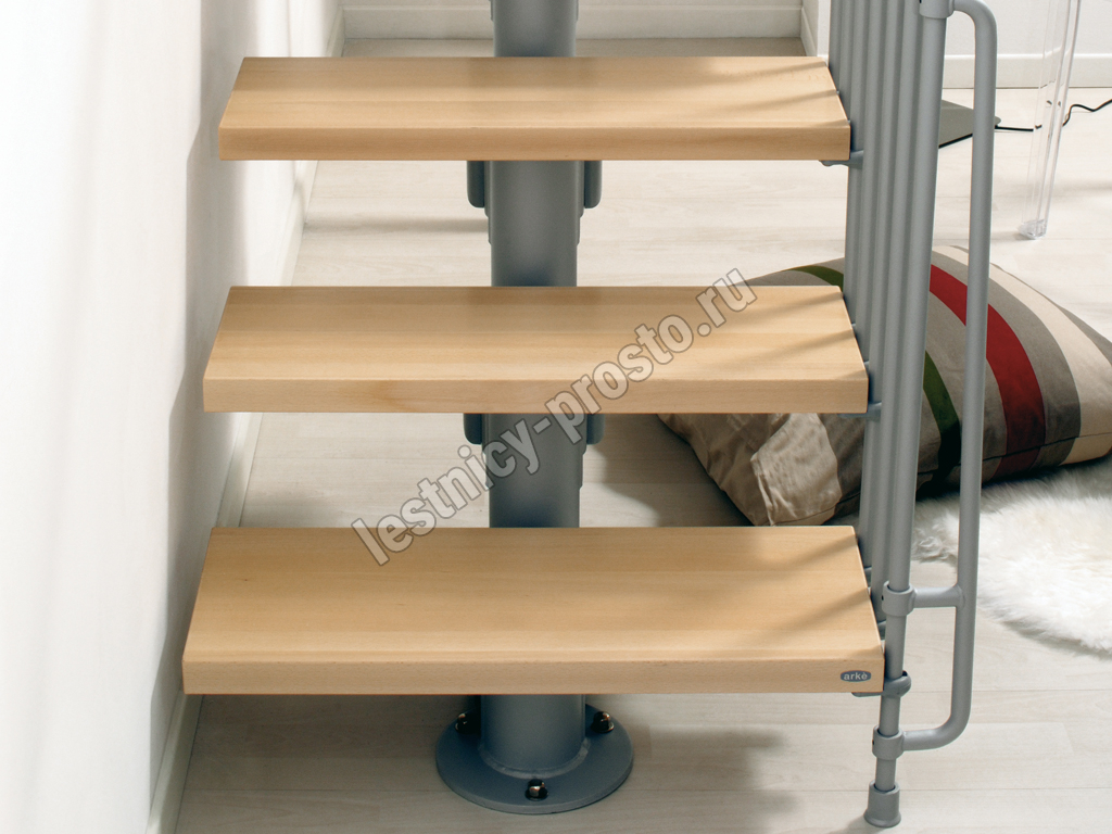 Красивая комфортная лестница с уникальной модульной конструкцией, которая позволяет собрать большое число модификаций, подходящих под ваш проём и другие условия помещения. Возможные варианты сборки лестницы смотрите в блоке "чертежи и схемы". При монтаже модульной лестницы KOMPACT, вы можете варьировать высоту шага и проступь, получив точную необходимую высоту и габариты. Лестница KOMPACT возможна в двух вариантах: с шириной марша 740 мм и 890 мм. Ступени выполнены из массива бука и покрыты качественным износостойким лаком. Базовая комплектация позволяет получить лестницу под высоты этажа в диапазоне 2250 - 3030 мм, кроме того, установив дополнительный комплект увеличения высоты, можно поднять высоту лестницы до 3730 мм. Каркас и стойки ограждения выполнены из пластифицированного металла.