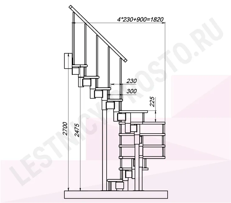 Высота лестницы 2475 - 2700 (11 ступеней) мм