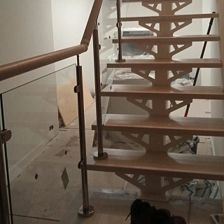 Стеклянная лестница из ясеня LP-2935 с металлическим каркасом