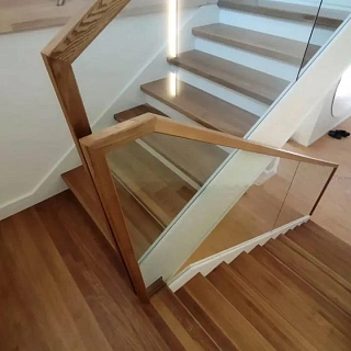 Лестница из стекла/дуба/керамогранита с подстветкой LP-1-53