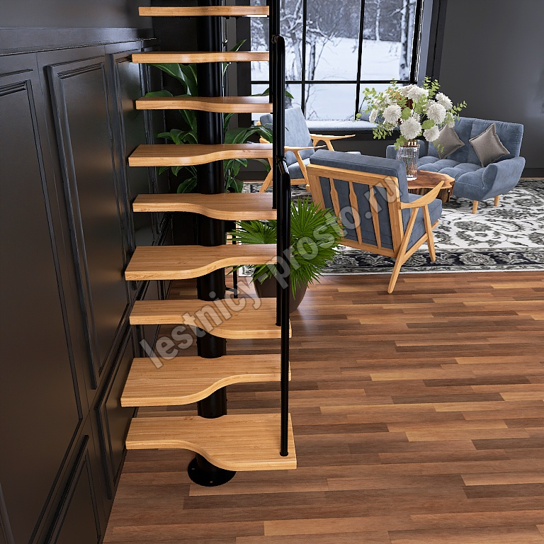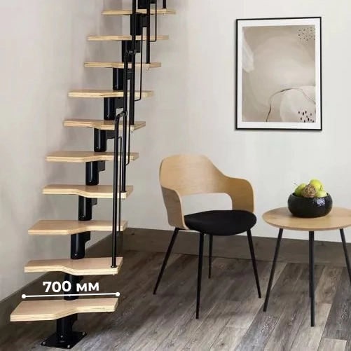 Лестница Prosto Urban Black гусиный шаг 700 мм, h234-336 см (13 ступеней), ясень