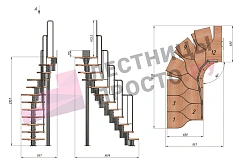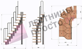 | Лестница Prosto Urban Grey г-образная гусиный шаг 600 мм, h198-288 см (11 ступеней) |