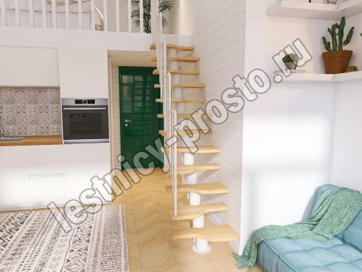 Лестница Prosto Urban White гусиный шаг 600 мм, h234-336 см (13 ступеней), дуб