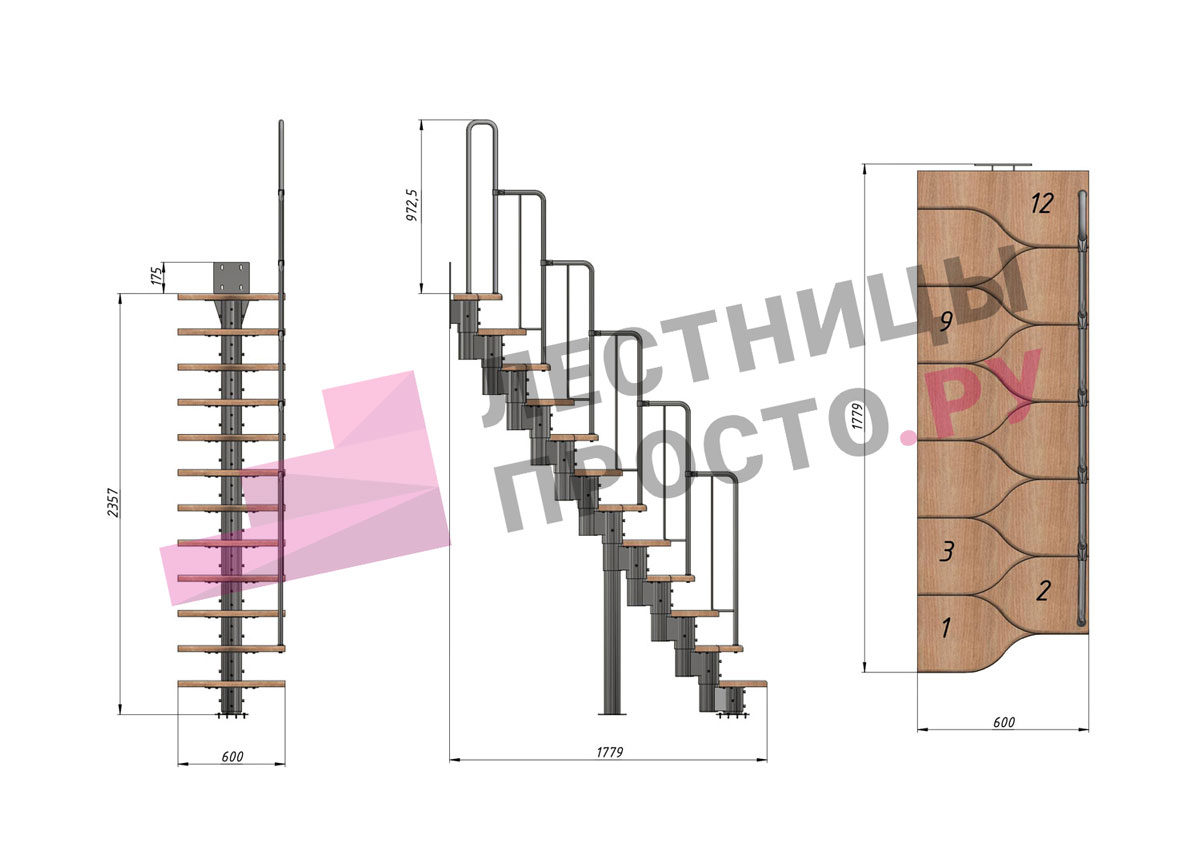 - Регулируемый по высоте в пределах 180-240 мм модуль. Большой диаметр и толщина металла деталей обеспечивают жесткость и прочность конструкции. Регулировка каждого модуля по высоте позволяет легко приспособить лестницу под ваше помещение.