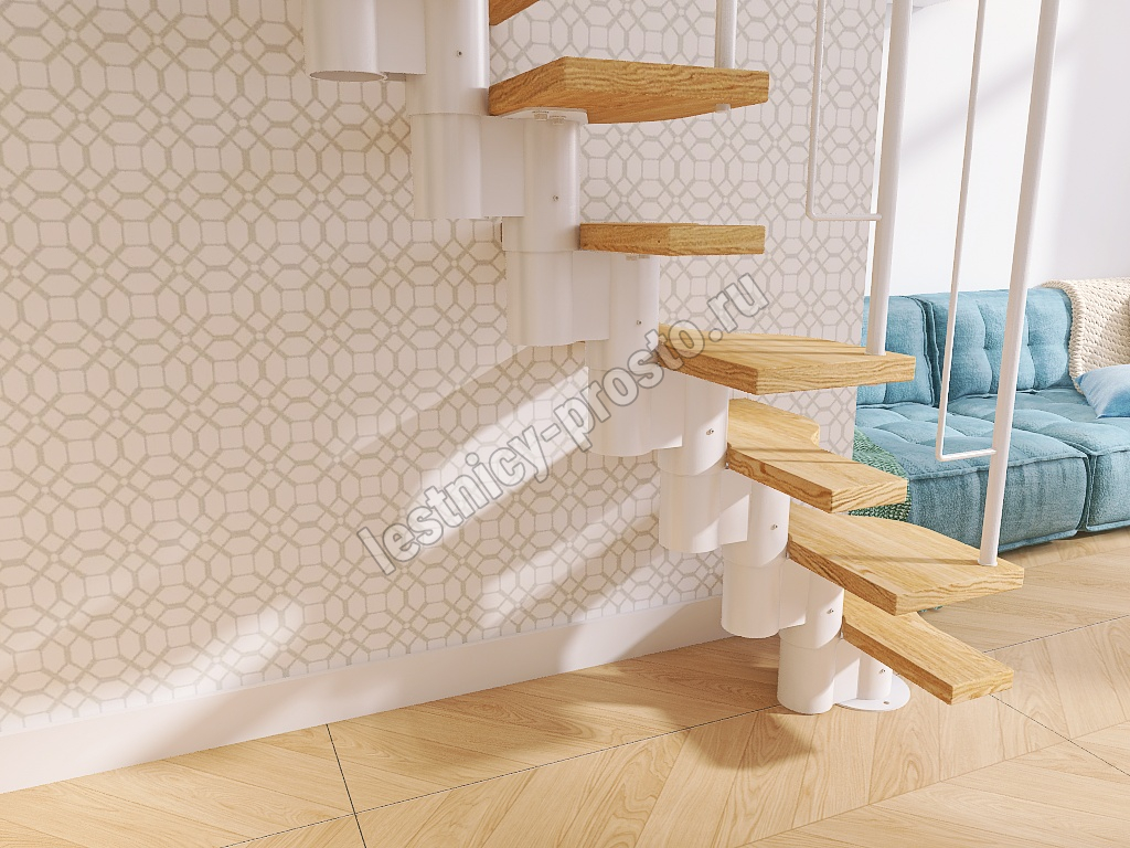 Лестница Prosto Urban White гусиный шаг 700 мм, h198-288 см (11 ступеней), ясень