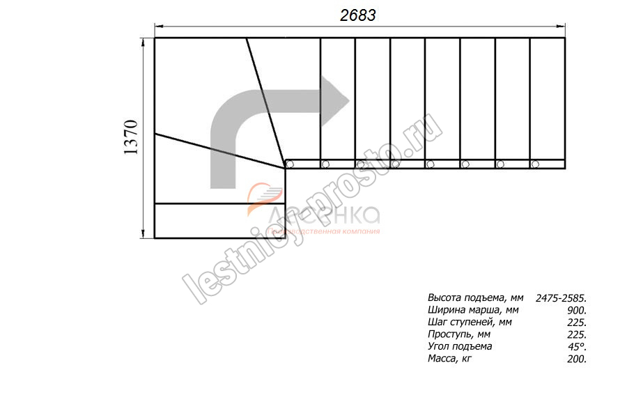 Модульная лестница Фаворит 225 2475-2585, Черный, Сосна, Нержавеющая сталь