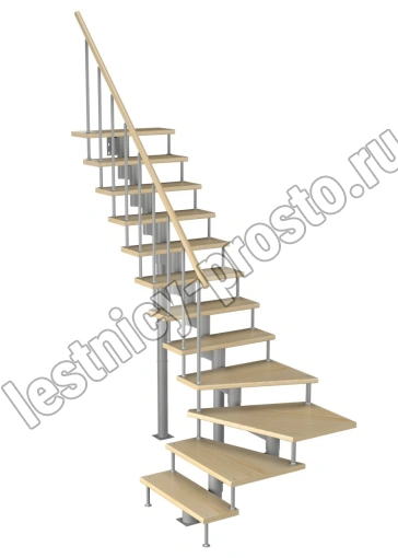Модульная лестница Фаворит 225 2700-2820, Серый, Лиственница, Нержавеющая сталь