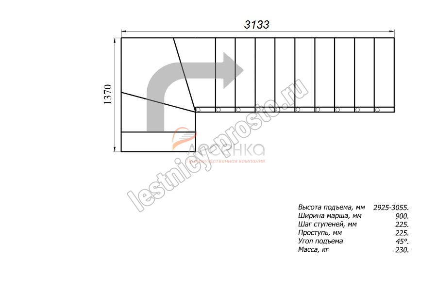 Модульная лестница Фаворит 225 2925-3055, Черный, Сосна, Крашеная