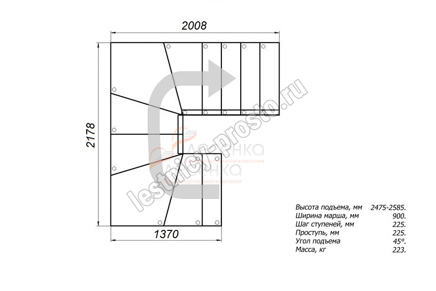 Модульная лестница Спринт 225 2475-2585, Черный, Лиственница, Крашеная