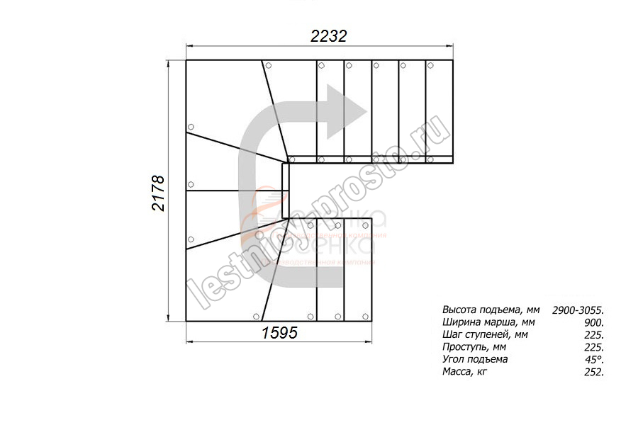 Модульная лестница Спринт 225 2925-3055, Белый, Сосна, Крашеная, Без Ступений