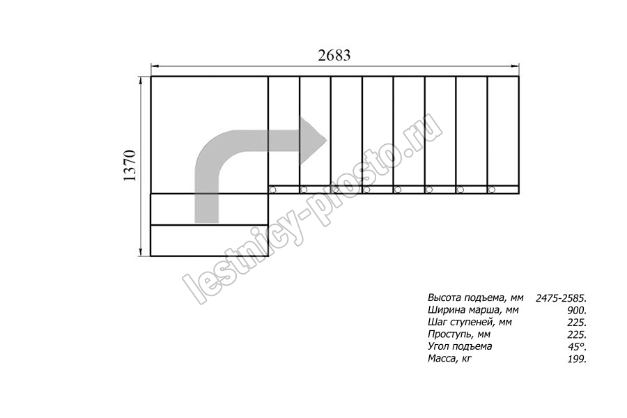 Модульная лестница Статус 225 2475-2585, Черный, Лиственница, Нержавеющая сталь