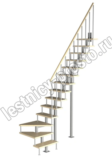 Модульная малогабаритная лестница Компакт 3150-3375, Серый, Лиственница, Нержавеющая сталь